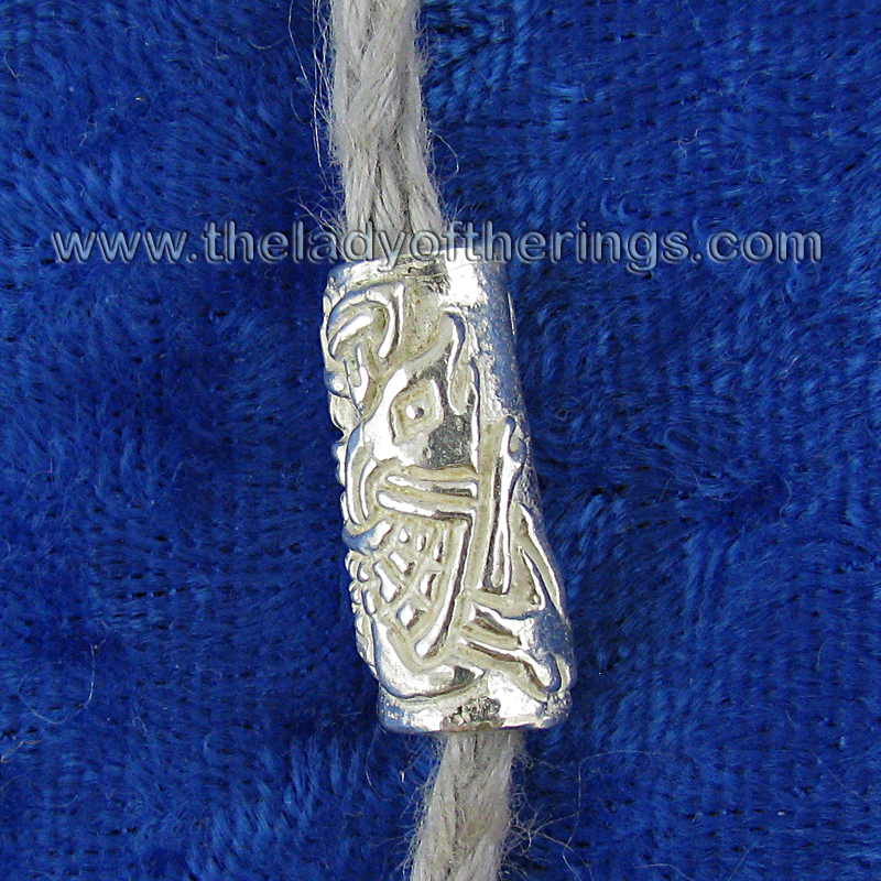 These jewels are inspired by the different viking graphic styles. We underline the fact that archaeology has never unearthed such beads in viking hoards yet. Viking metal beads were generally round, hollow and granulated, and were seemingly never used in hair or beard. Our beads cannot claim to be replicas or suitable accessories for demanding reenactors, but display patterns in known viking styles.